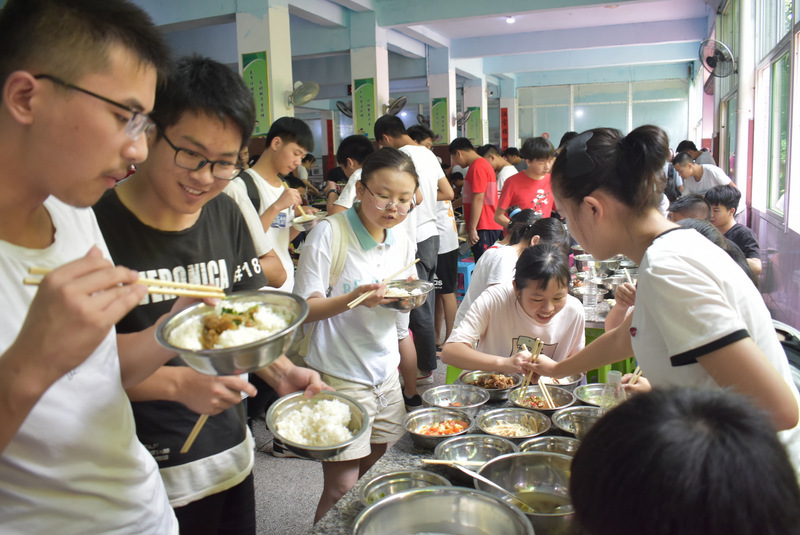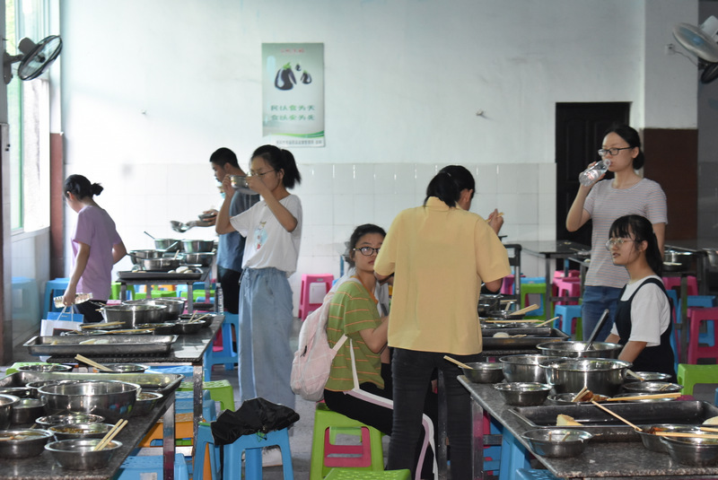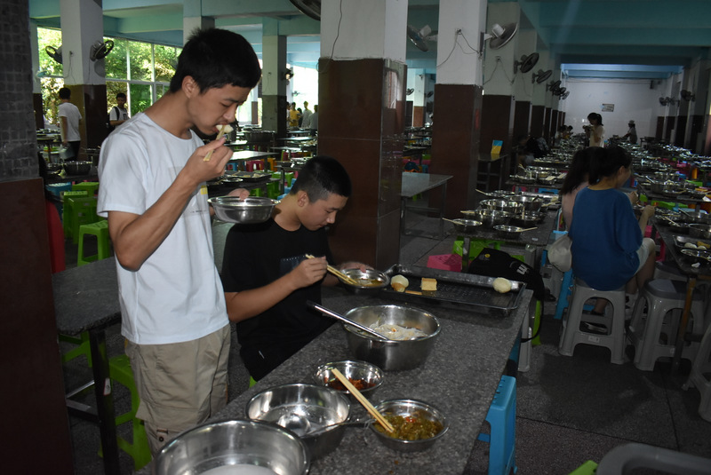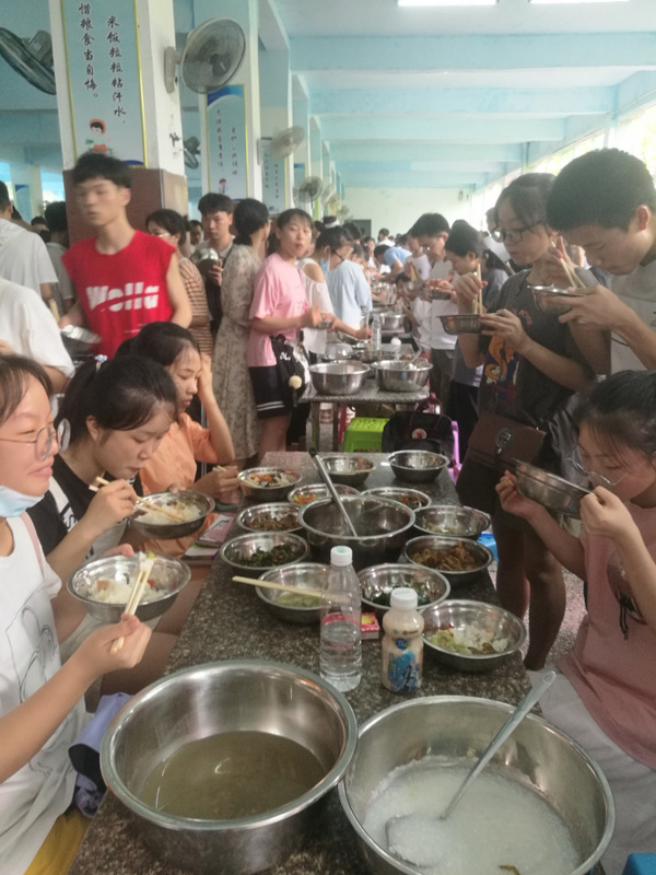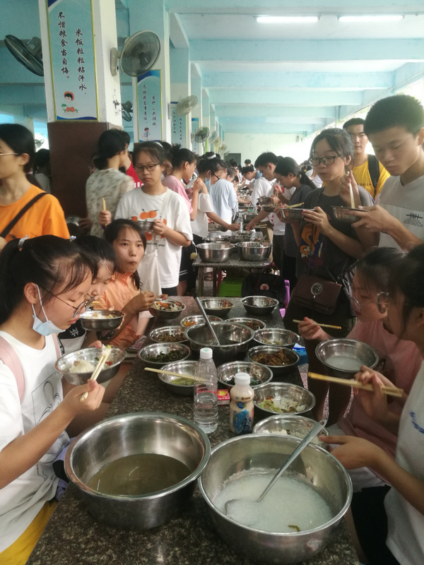6:50,考生们有序进入餐厅早餐 ,包子、馒头、米粉、油条、白米粥,应有尽有,美味又营养。