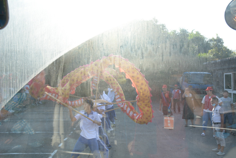 7:23,学校南大门龙腾狮跃,热闹非凡。学校龙狮队精心准备的龙狮节目应声而起,孩子们手舞长龙、蛟龙出海、穿梭前进、腾飞云霄,不是真龙胜似真龙。两只正源憨狮无不体现着机智灵敏、无畏勇敢、憨厚可掬。