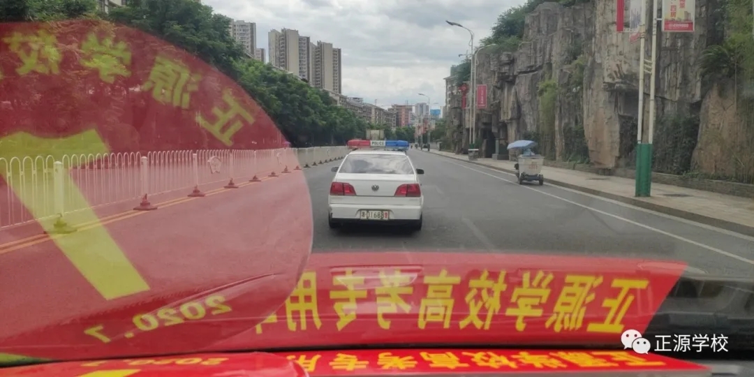 交警护航,领队给力,原本到二中考场需要30分钟,今天只用了15分钟。开考前,各个考点正源校旗飘扬,“加油加油加油,必胜必胜必胜”的呐喊声、加油声此起彼伏,响彻考点。