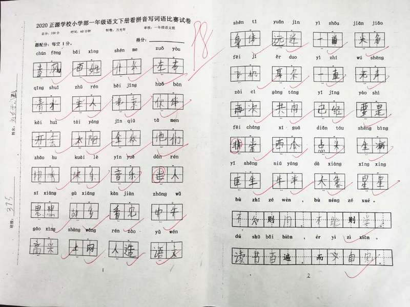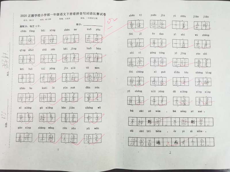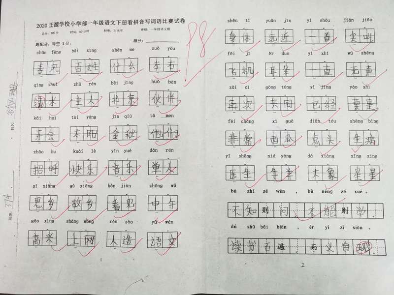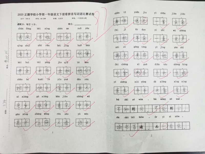 为了检验学生本学期拼音、生字词学习情况,促进学生热爱并规范使用汉字,7月11日小学部一年级学生特举行了“我是拼写小达人”的看拼音写词语比赛活动。