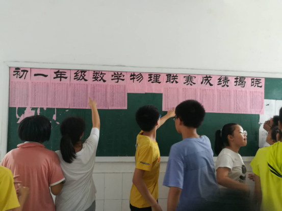 12日下午,年级教务处出刊“初一年级数学物理联赛成绩揭晓”专栏。获奖同学欢呼雀跃,难以掩饰内心的激动心情,他们对未来充满了无限憧憬。围观同学啧啧称赞,羡慕之余乐人所乐,梦想自己下次也能榜上有名。