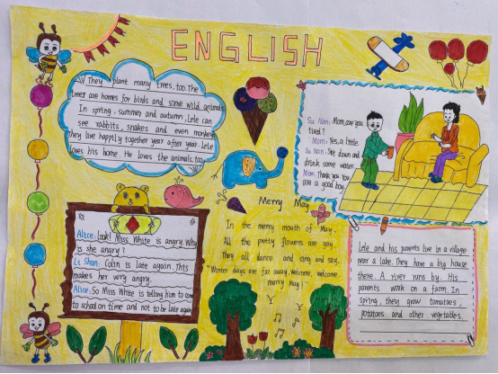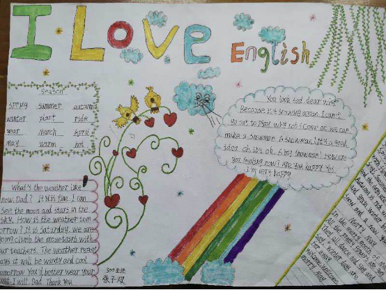 学生通过本次英语手抄报活动,不仅更爱英语了,还以英文方式自我学习了季节、美食、异域文化、牙科卫生、城市乡村等知识,同时,提升了个人欣赏美、创造美的艺术修养。