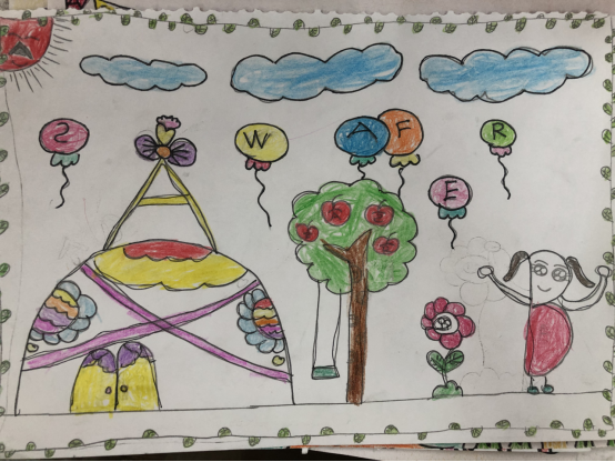 本次活动由一二年级英语组共同商讨,选出与一年级学生年龄阶段相符合的活动,此活动充分的展现出了孩子们爱画画,爱想象的天性。通过本次活动,孩子们学会了到生活中去发现英语,在生活中有意识的去运用英语。
