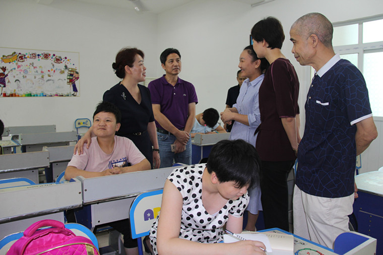 湖南省民政厅厅长唐白玉,衡阳市委常委、耒阳市委书记罗琼看望耒阳市福利中心儿童。图片来源:红网