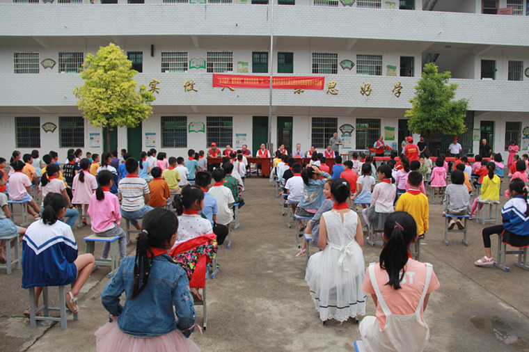 耒阳市民政局“合力监护、相伴成长”关爱农村留守儿童活动走进灶市街街道零洲小学。图片来源:红网