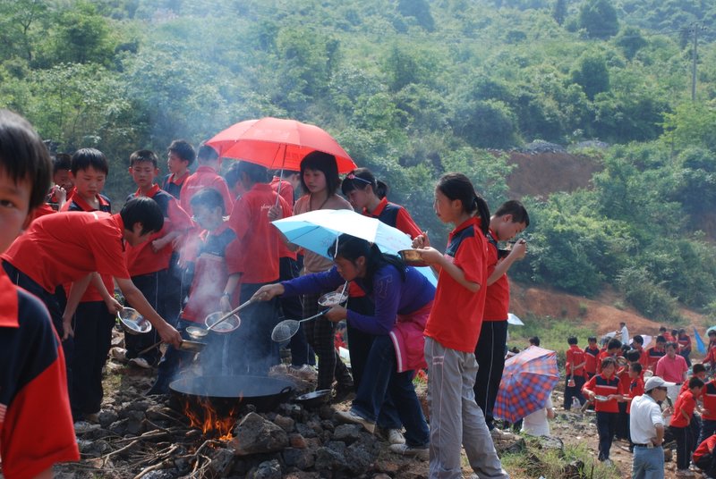 2009年4月22日,小学五、六年级学生,在学校领导罗校长、小学部刘主任及老师们的带领穿着整齐的校服徒步南岭仙,在山上,同学们唱歌跳舞搞野炊 ,其乐无穷。