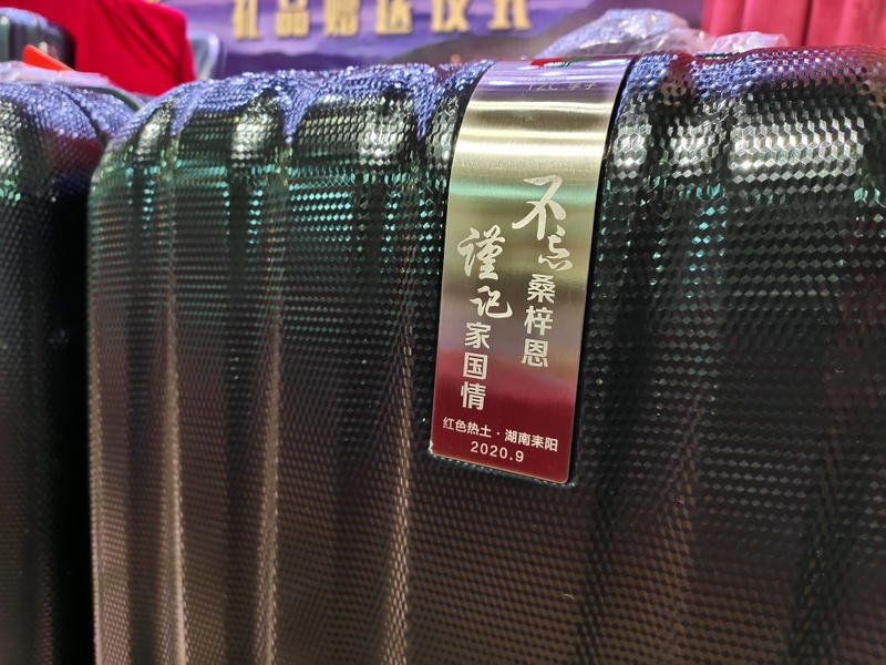 仪式现场,各学校代表登上荣誉台,领取箱包礼品牌。我校三本以上1744名同学获得市委政府赠送的特别定制的品牌行李箱,此次市委政府赠送的每个行李箱上都有学生姓名。
