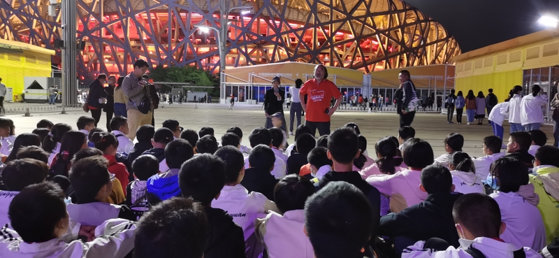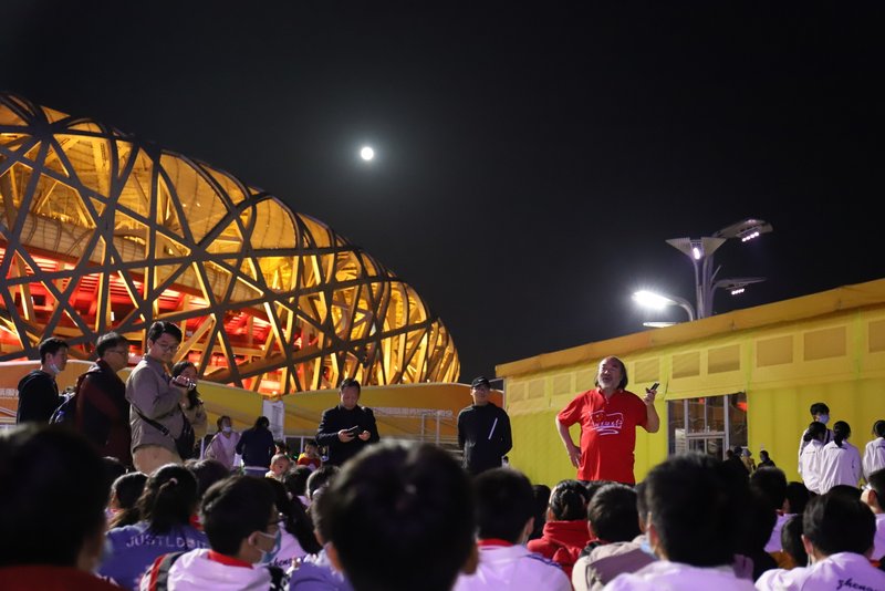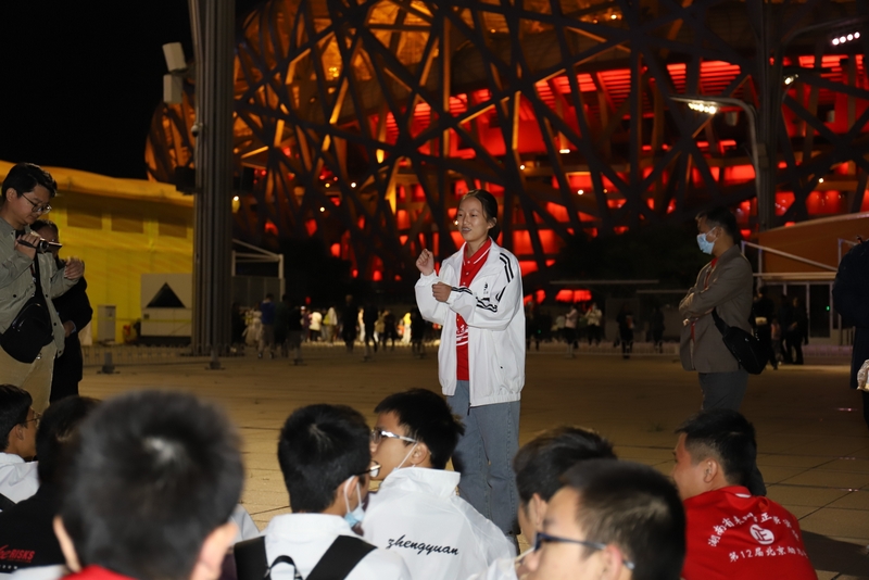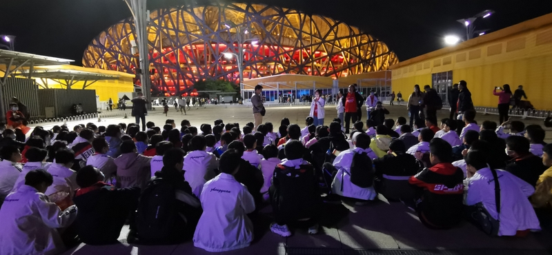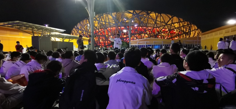在鸟巢与水立方的中轴线上,校长罗湘云从中国古代与现代文明讲起,勉励同学们时刻谨记民族大义,为中华民族的伟大复兴努力学习、工作。