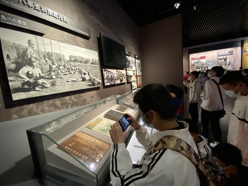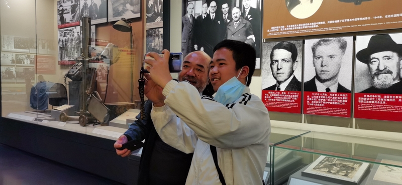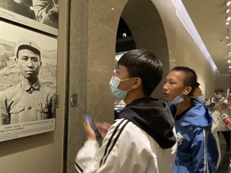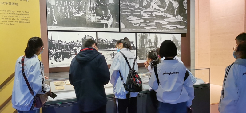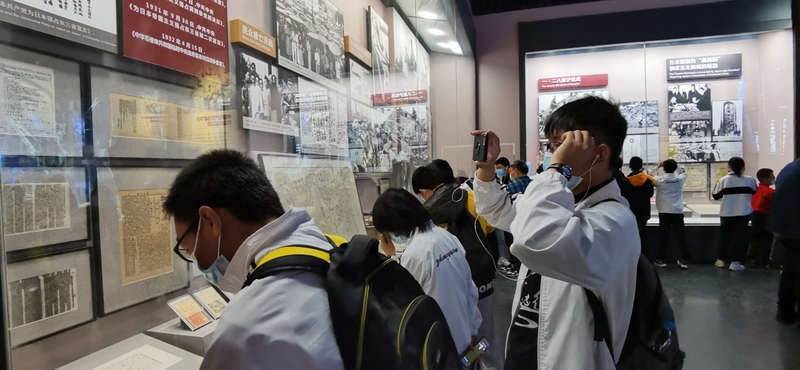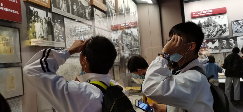 在中国人民抗日战争纪念馆,同学们认真阅读、查看馆内陈列,并用手机拍照记录。对于大多数同学来说,中国人民抗日战争纪念馆所带来的思想冲击是前所未有的。232班朱子欣在交流时认为,中国人民抗日战争纪念馆建造的真正目的是让人们铭记历史、珍爱和平。