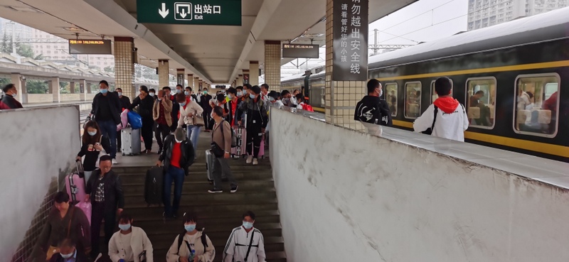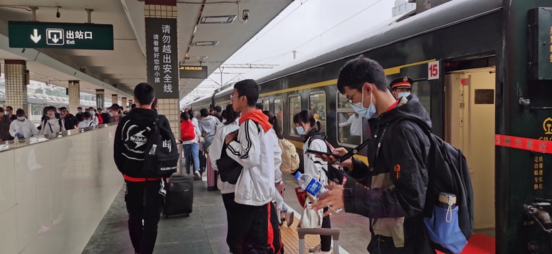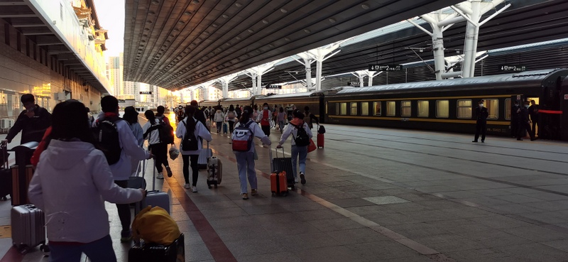 经过一夜的旅途,10月6日早上8:20,励志团队乘坐的Z1次列车抵达长沙。