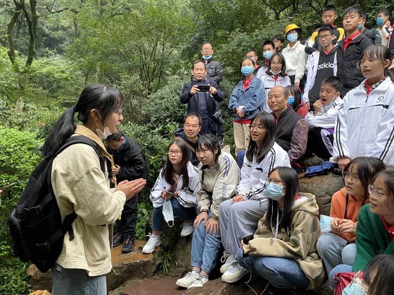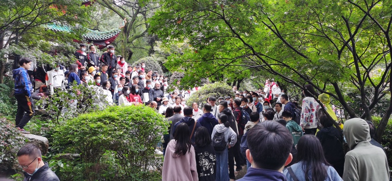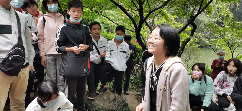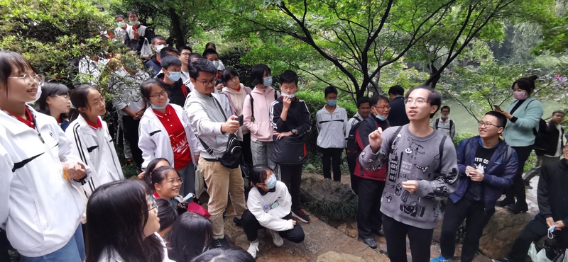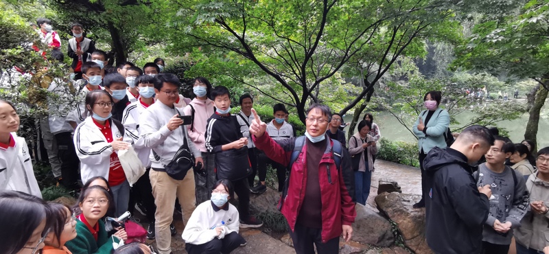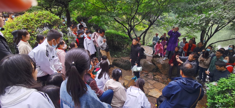 师生们齐聚爱晚亭高声朗诵《沁园春·长沙》