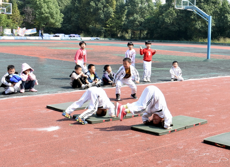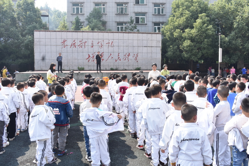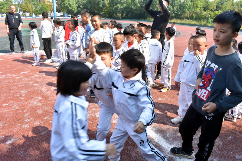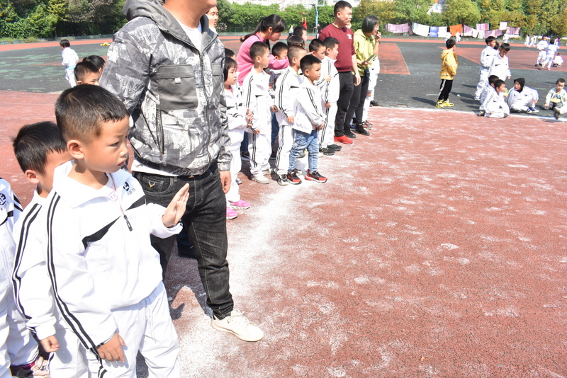 活动开始前,孩子们站的整整齐齐,认真听老师讲比赛规则