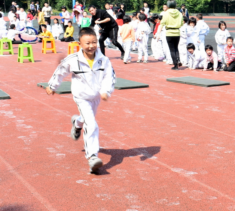激烈的比赛终于开始了,我跑的头发都飞起来啦!