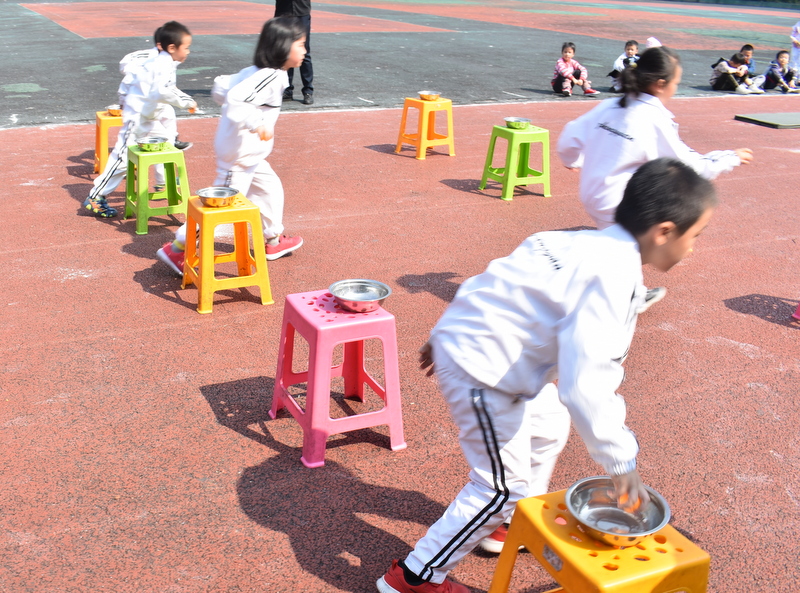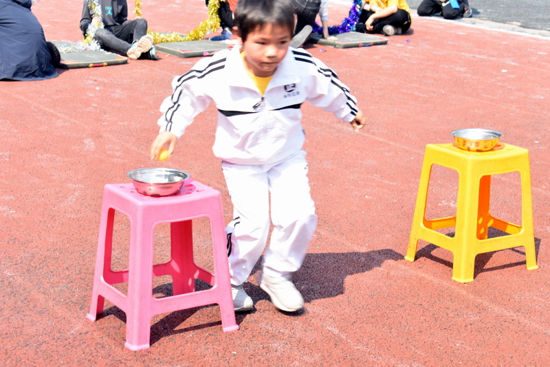第二关,手拿乒乓球。球儿球儿,你可千万别弹走呀!