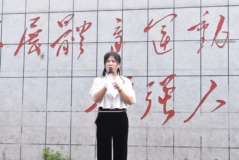 接力比赛前,年级主任杨焕姣针对开学以来年级学生的学习、生活、行为习惯等各方面情况,进行了总结,鼓励年级师生齐心协力举办好本次比赛,赛出风格,赛出水平。