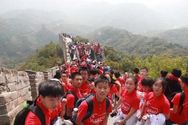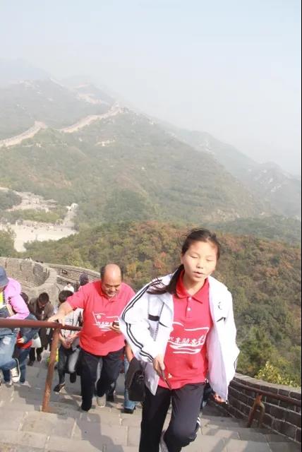 ▲2017年,钟芳蓉攀登长城(前排右一)