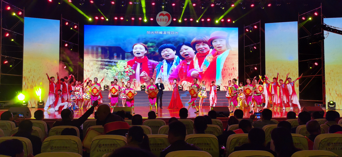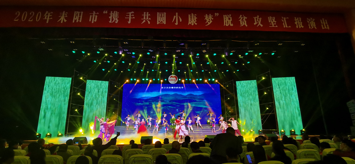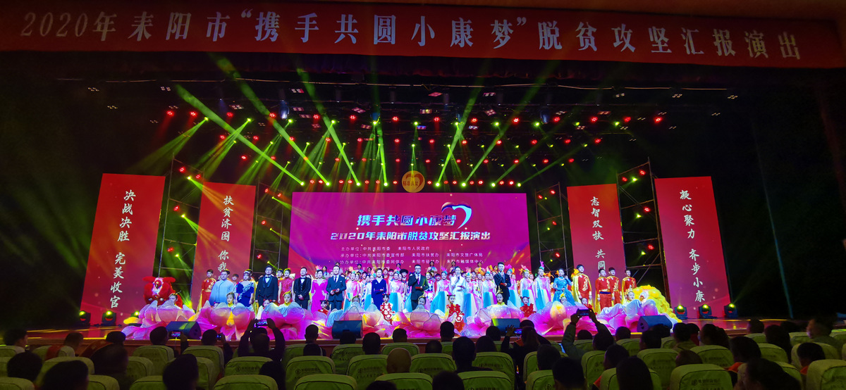 在我国第7个“扶贫日”即将到来之际,10月15日,由中共耒阳市委、市人民政府主办,耒阳市委宣传部、市扶贫办、市文旅广体局承办的“携手共圆小康梦”2020耒阳市脱贫攻坚汇报演出大型晚会在市文体会议中心隆重举行。晚会生动形象地展示脱贫攻坚工作成效,宣传扶贫干部感人事迹,传递基层群众在脱贫攻坚中的获得感、幸福感。