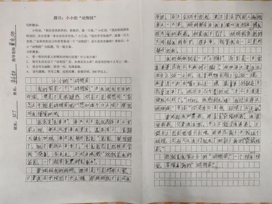 比赛现场,只见参赛选手们时而凝神思考,时而奋笔疾书;百思不得时,抓头挠耳;终有所悟时,喜形于色。60分钟后,一篇篇构思新颖、富有真情实感的文章便跃然纸上。