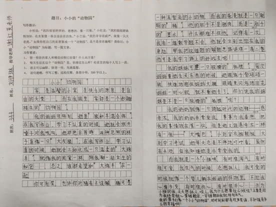 为了保证比赛公平公正,作文评选由语文老师从各班精选出五篇作文交年级组,统一密封装订后再由年级组所有语文老师共同评阅。最终评选结果为:一等奖10名,二等奖,20名,三等奖30名,优胜奖40名。