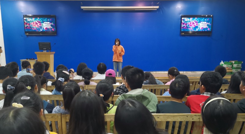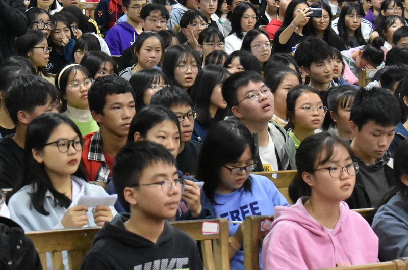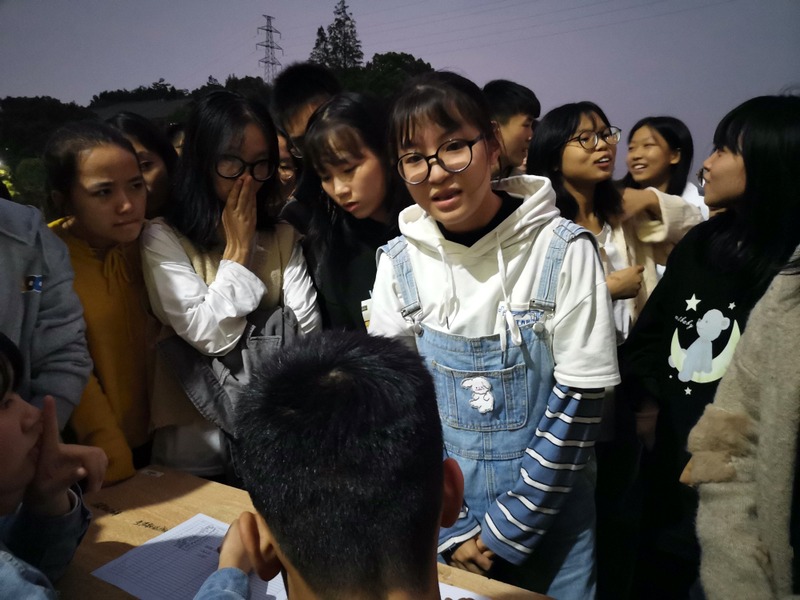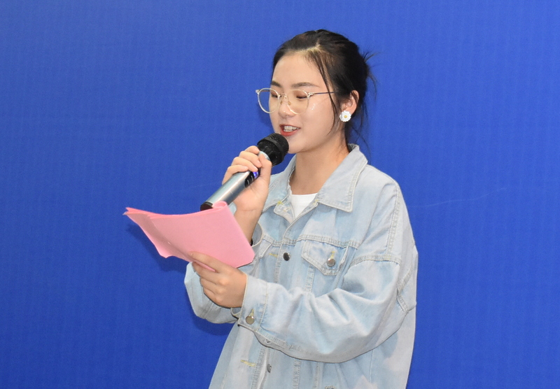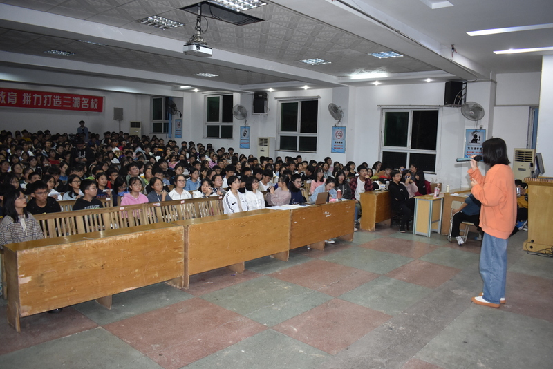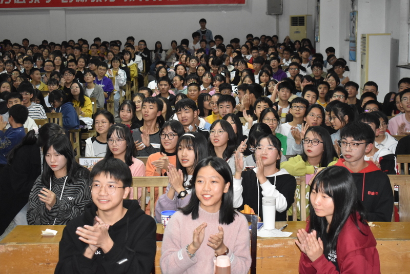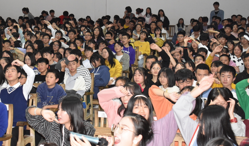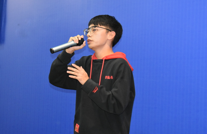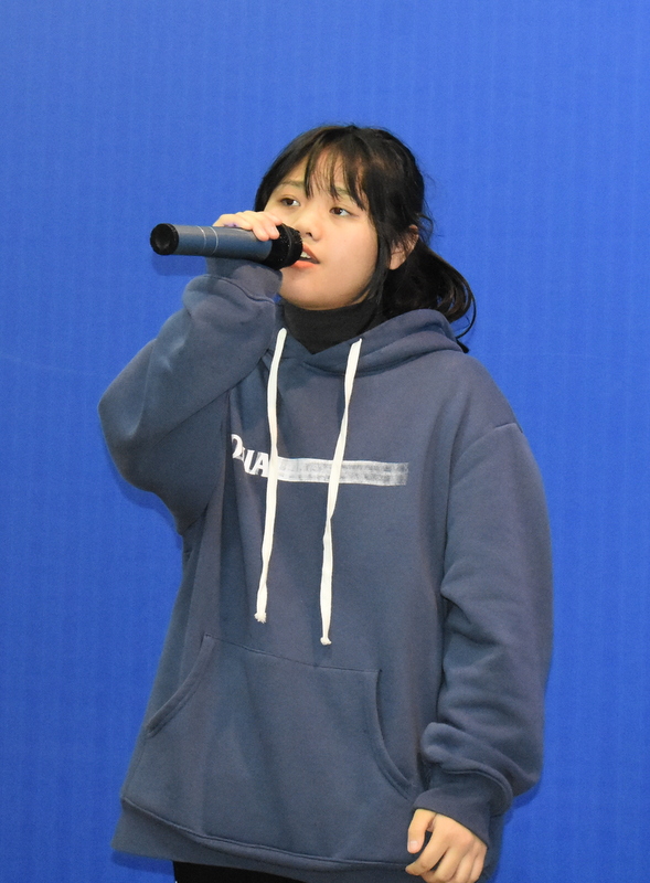 10月21日下午六点四十,决赛在报告厅正式举行。观众凭票入场,脸上洋溢着兴奋。在大家齐唱《奇迹再现》的歌声里,两位主持人吴月婷、谷跃臻带着热情的笑容上场,为观众们揭晓了比赛流程:独唱、中场和助唱环节。