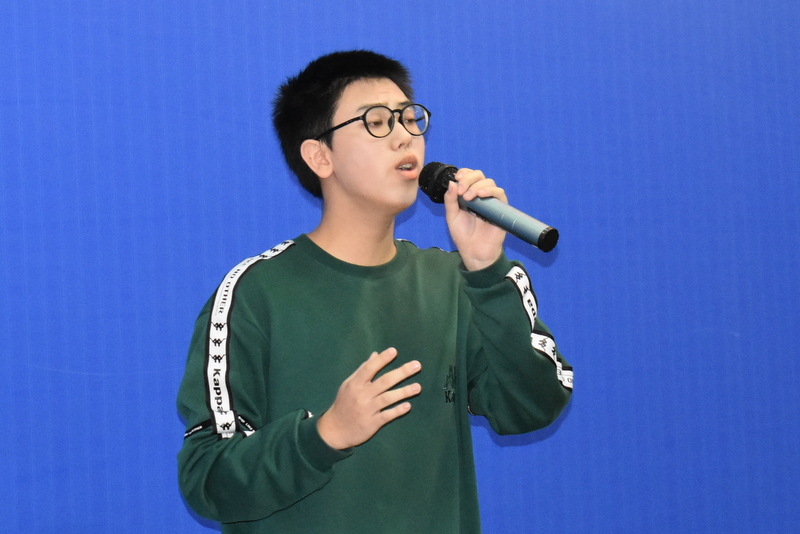 天朗气清,惠风和畅。正源学校南大广场上人头攒动,或歌或笑,一派热闹的景象。许多同学围在大厅前的评委桌前,一展歌喉。