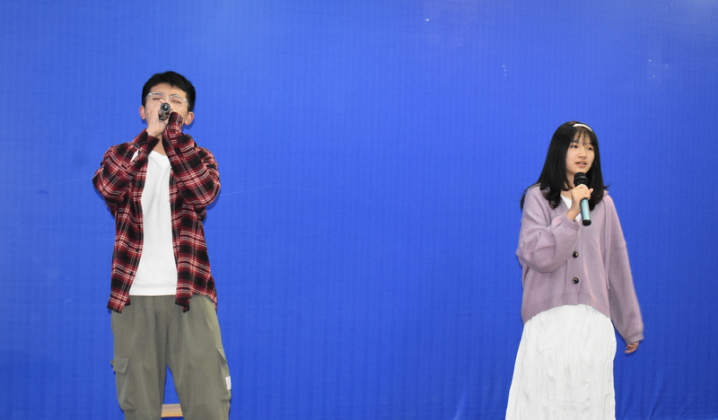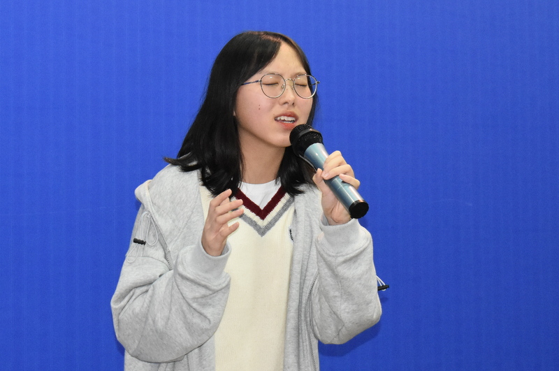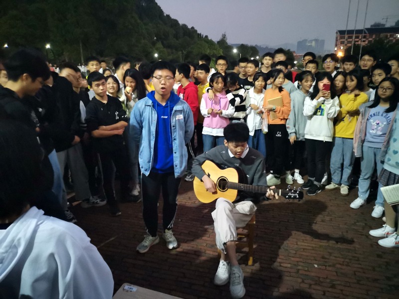 接下来的几天,下午五点五十整,歌声唱响校园,或高昂激荡,或温柔婉转,或清亮悠扬。复赛选手在广播站内使用话筒演唱,动人的歌声传遍每个角落。