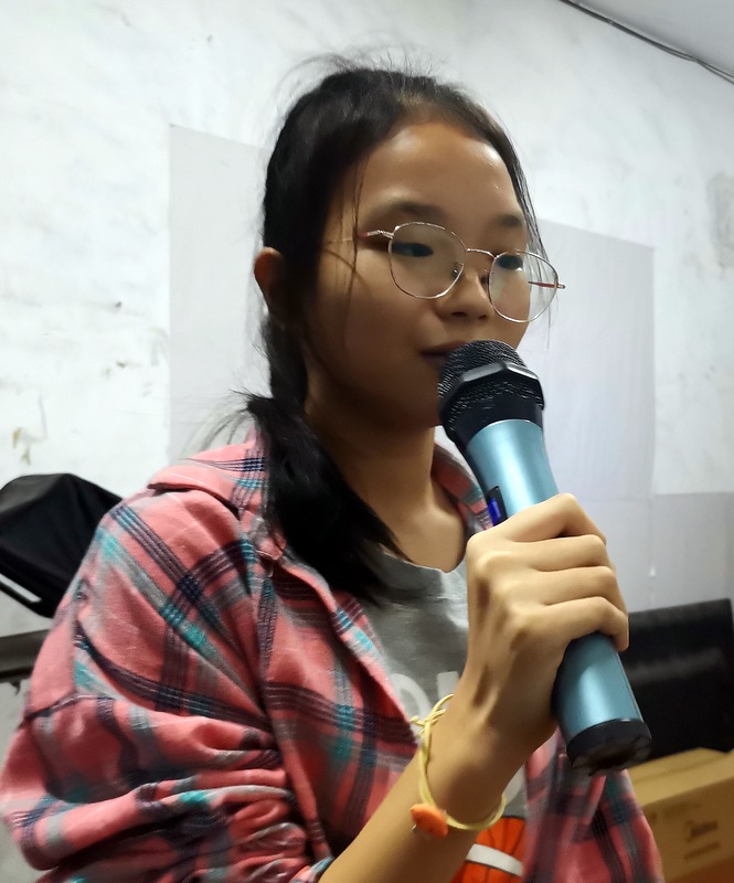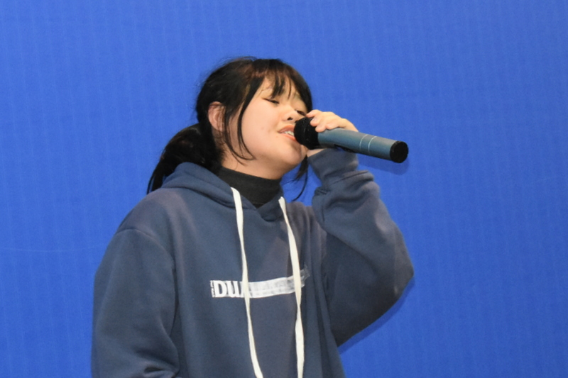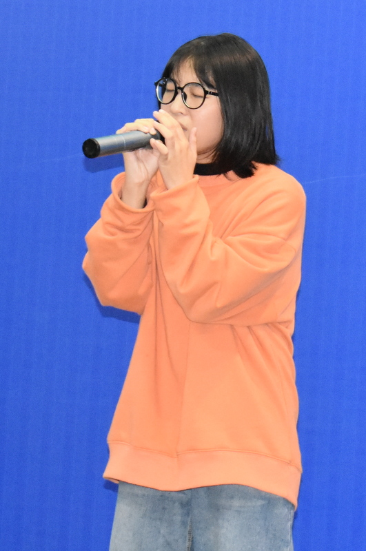 选手刘雨涵在最后登场,用她独特的嗓音演唱了一曲《Cyberangels》,全英文的歌唱倾泻而出,如跃动的音符,在场内激荡,在台上飞舞。嘘,我们不吵不闹,只要听就好了。