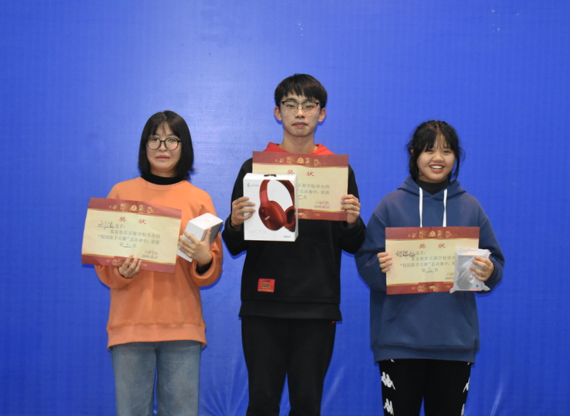 最后在全场观众的期待下,比赛结果出炉。段宸宇炀夺得第一名,获得奖品头戴式蓝牙耳机;第二名刘洁,奖品为蓝牙音响;第三名胡锦梅,奖品为蓝牙耳机。四到十名依次为:肖贻镡、谷跃臻、刘雨涵、徐佳、刘静怡、刘粤、谢卓峰。