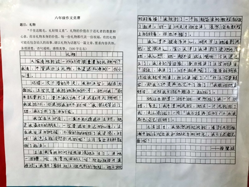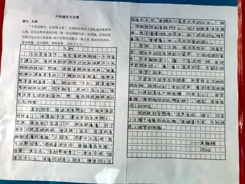 为进一步提高学生的作文水平,丰富校园文化生活,根据小学部语文教研组安排,10月20日上午九时许,六年级现场作文竞赛正式举行。