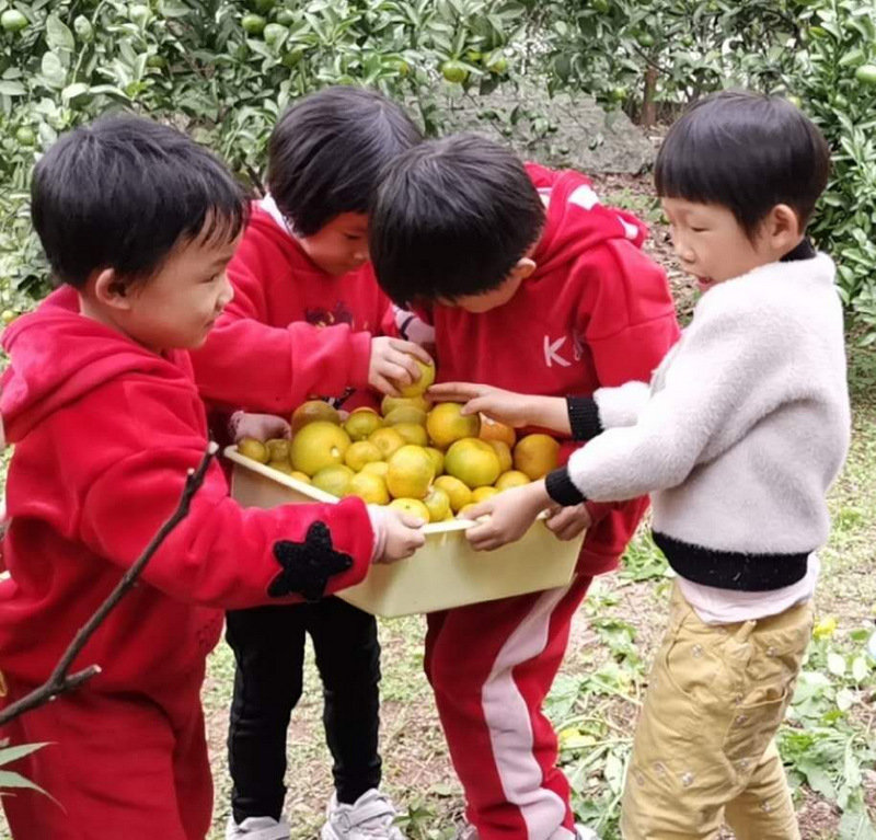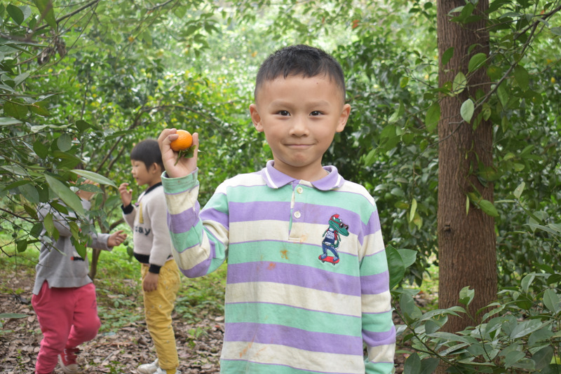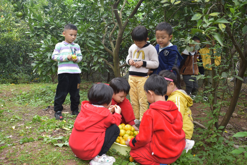 分好小组后,采摘正式开始了。小朋友们欢欣雀跃地奔向心仪的果树,都想摘到那个最大、最漂亮的橘子。同一组的小朋友相互合作,有的抬着筐,有的摘橘子,一个个有说有笑,天真无邪。看到镜头,还不忘调皮地摆上一个POSE。还有几个小吃货,自顾自地躲在一边吃起了橘子,嘴里还念叨着“真甜”。