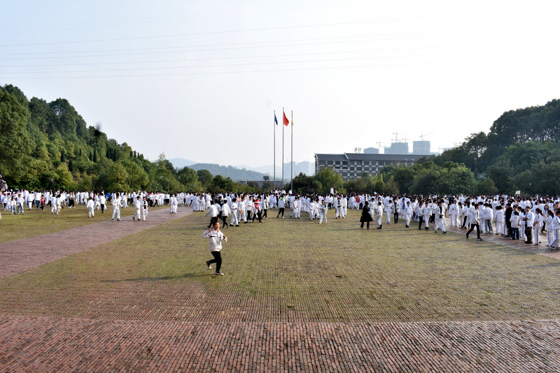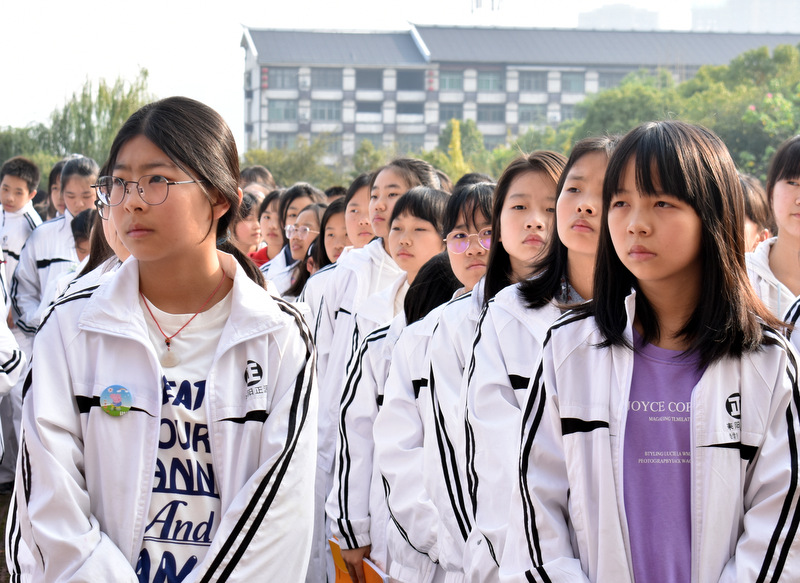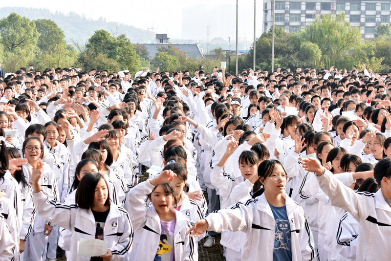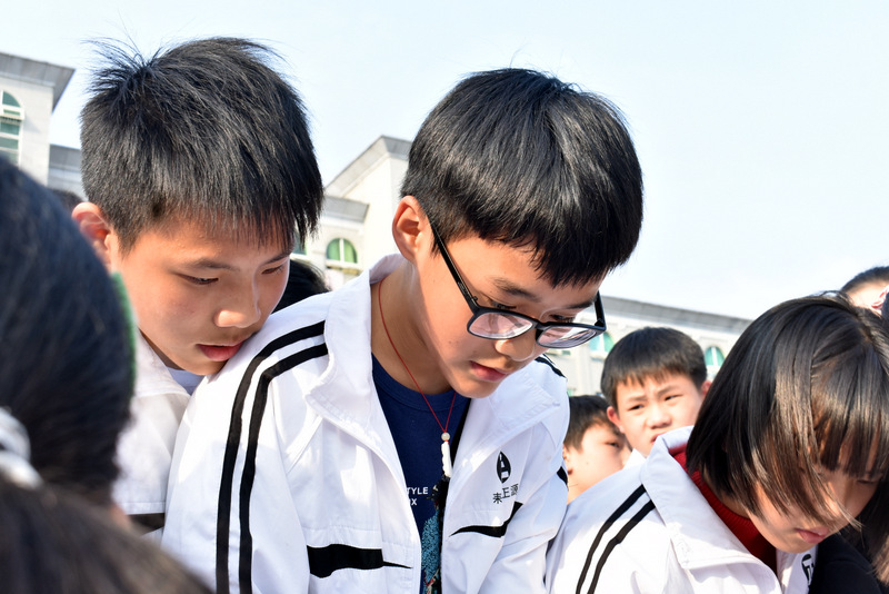 All my life I’ve been waiting for. I’ve been praying for, for the people to say,that we don’t wanna fight no more, there’ll be no more wars and our children will play one day.同学们先齐唱了一首关于反对战争的英语歌曲 one day 为活动热身。