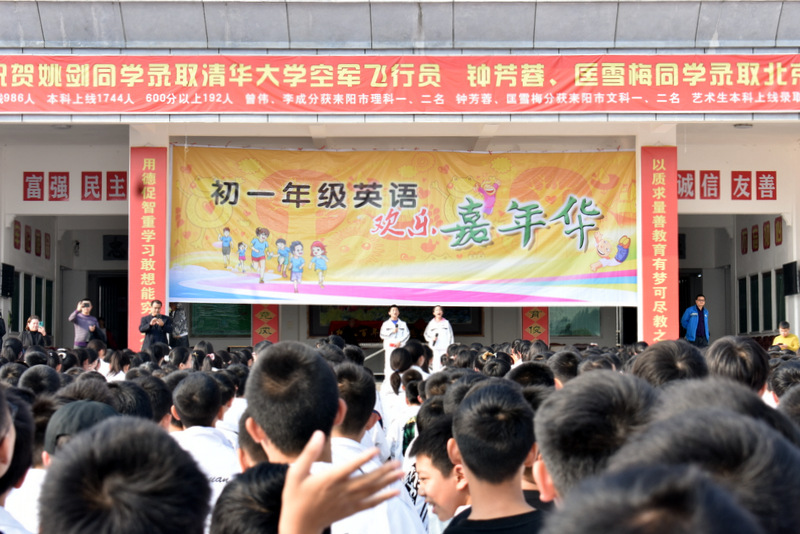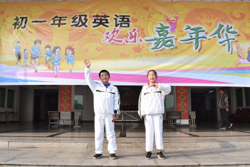 “希望同学们能够借这次机会,更好的展示自己的才华,为以后的学习奠定坚实的基础,亲爱的同学们,希望你们好好的学习英语,从此爱上英语,你们以后的学习会如鱼得水!”“Boys and girls,are you ready? Let’s go!”在年级主任尹主任的殷切鼓励中,初一年级英语欢乐嘉年华拉开了帷幕。