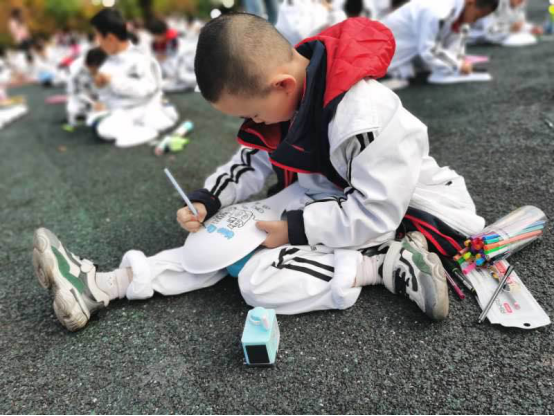 11月4日上午9点,可爱的小画家们,一手画笔,一手道具马勺,昂首挺胸,整装以待。