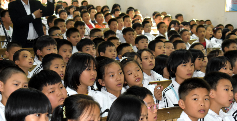 比赛在学校报告厅进行。本次比赛特邀罗俊豪主任、刘静主任、蒋飞主任和小学部英语组长谢冬情老师莅临指导,本年级优秀教师担任比赛评委,四年级参赛的14个班级学生全部到场观看。