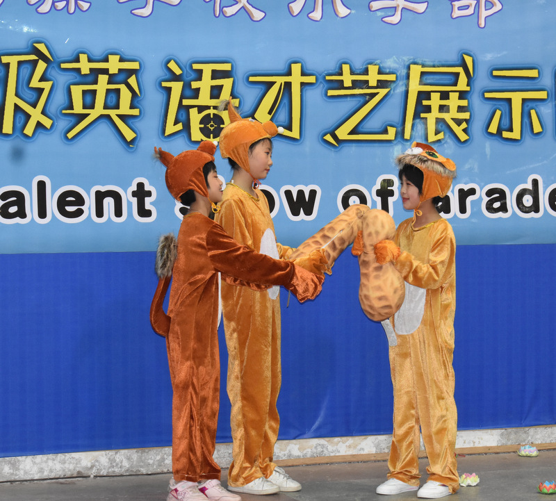 最后,331班的话剧《The snow white》、332班的话剧《The proud peacock》和340班的话剧《Three little pigs》以其灵动、幽默、以及富有创意荣获一等奖;327班的歌舞《Lighting bugs》、330班的诗歌朗诵《The four seasons》、333班的舞蹈《What makes you beautiful》、341班的话剧《Little red riding hood》和343班的话剧《Pulling the carrots》荣获二等奖;326班的合唱《Edelweiss》、328班的话剧《Little lions looking for food》、329班的诗歌朗诵《Life is beauty》、342班的歌曲《Do re mi》、344班的话剧《The clever rabbits》以及345班的话剧《The little tadpoles》荣获三等奖。