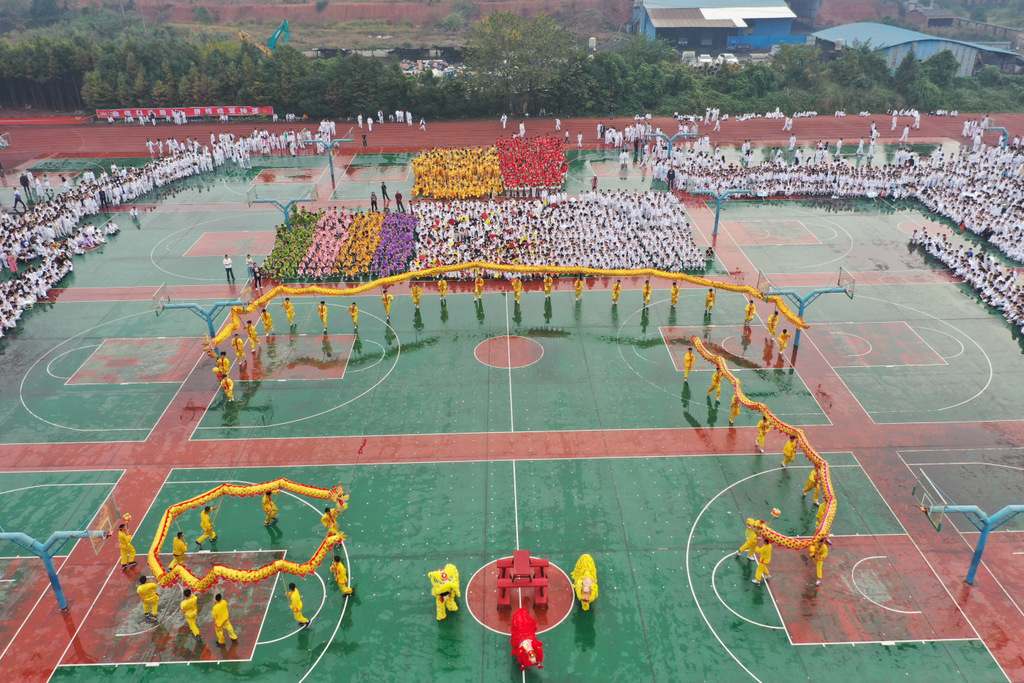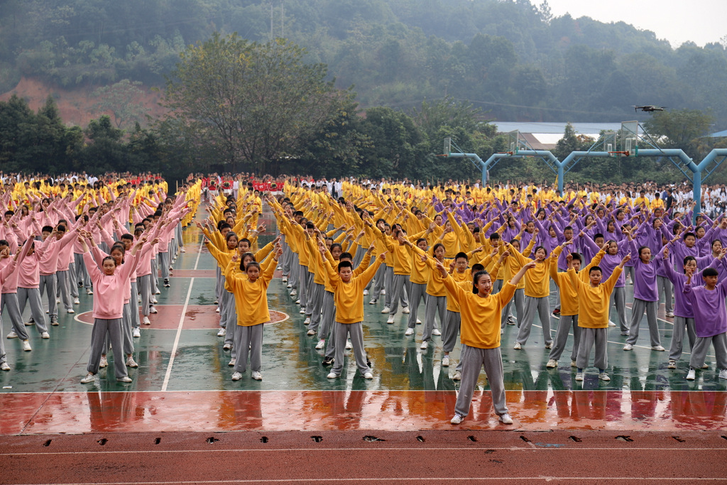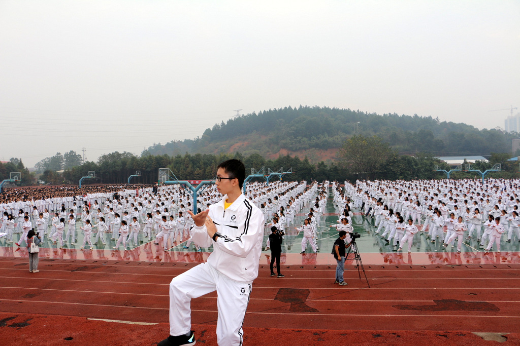 震天动地的《万人跑操》与气势恢宏的《千人太极》无缝对接。