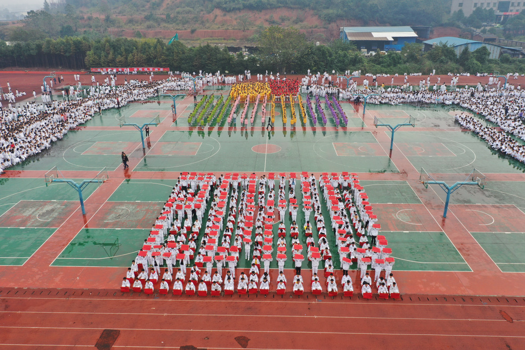 12000名正源中学生全部入场就绪,肃然而立。“歌唱我们亲爱的祖国,从今走向繁荣富强……”铿锵有力的正源万人大合唱响彻云霄。