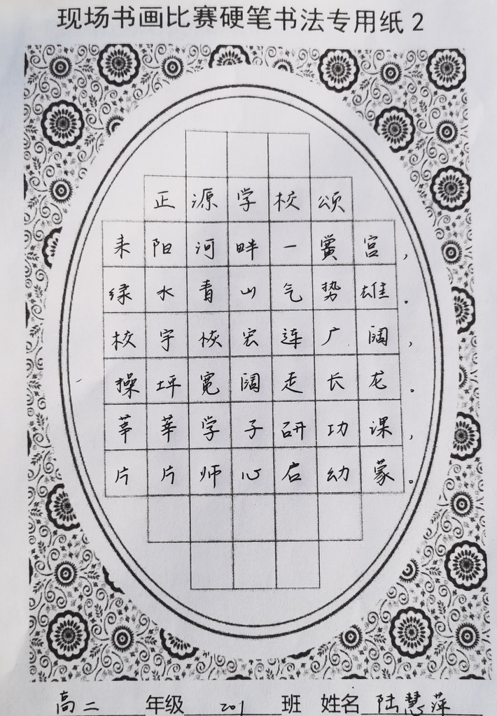 现场比赛中的书法类的同学们有的屏气凝神、有的气定神闲、有的聚精会神。他们专心致志、行书运笔写好每一个笔画,每一个汉字。作品或工整有力、或飘逸灵动、或清新淡雅、或秀气隽美......书写内容,有誊抄唐诗宋词、传承古韵之风;有书写“核心价值观”、宣传文明精神;更有书写党和国家领导人系列重要讲话金句、名人语录,饱含家国情怀。既展示了学生的书写功力,又激发学生对艺术的爱好与追求,体现出了学校对艺术教育的重视及成功。