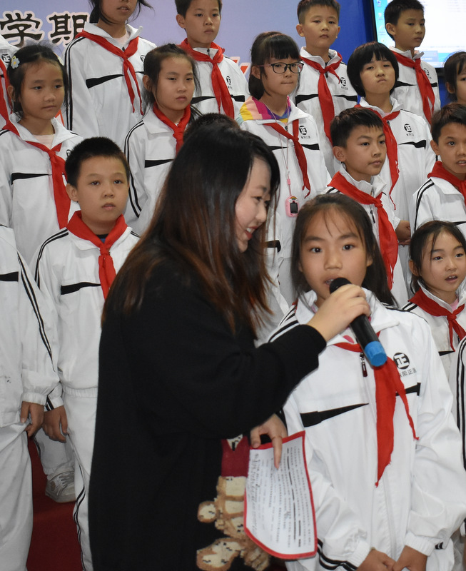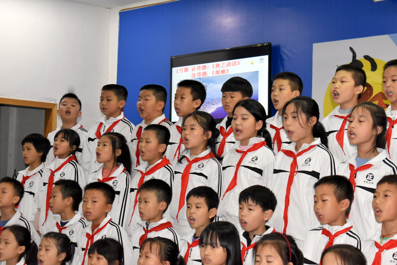 比赛在孩子们热情洋溢的歌声中拉开序幕。年级蒋主任在比赛开始前对孩子们殷切鼓励,期望大家能够发挥出色,勇敢展现自己的风采。共有20个班级参赛,分为下午和晚上场。《观潮》中奇伟壮阔的钱塘江大潮,浩浩荡荡地涌来,那声音山崩地裂;《走月亮》中优美的月下美景,充满温馨的氛围,让人陶醉其中; 巴金笔下星群密布,深邃迷人的《繁星》,在同学们的演绎下,让人仿佛身临其境,与作者共赏大自然的奇景;最引人注意的是《爬山虎的脚》,这种神奇的植物,同学们用清脆悦耳的朗诵声,把叶圣陶先生描绘的美景一一展现,赢得了师生们的阵阵掌声;古诗连诵和古文诵读,让在场师生们深深地感受到了中华文化的博大精深。更有趣的是老师们对必背内容《秋之谚语》的改编,有的班级加入快板,响声清脆,节奏明快;有的班级加入动感背景音乐,朗朗上口,趣味十足;有的班级拍手齐诵,动作整齐,嗓音清亮。最吸引眼球的是332班王志强同学的特别演出,舞姿妖娆,表现大胆,把比赛氛围推向了高潮……比赛最后,学部罗主任作总结讲话。他肯定了孩子们的表现,鼓励孩子们要勇于表现,敢于表现,并提出要在学好课内知识的同时,增加课外知识的阅读和背诵,让我们成为真正的新时代博学少年!