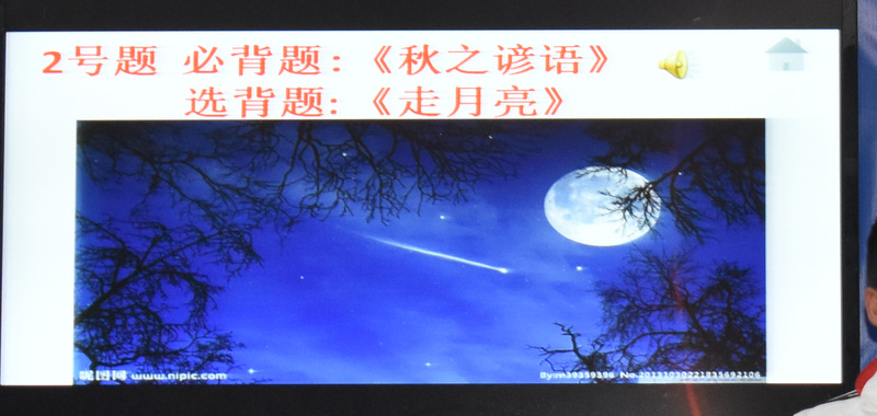 本次比赛规则:从课本中抽取经典美文,现场抽签进行背诵,由评委进行评分,选出一等奖、二等奖、三等奖的班级。