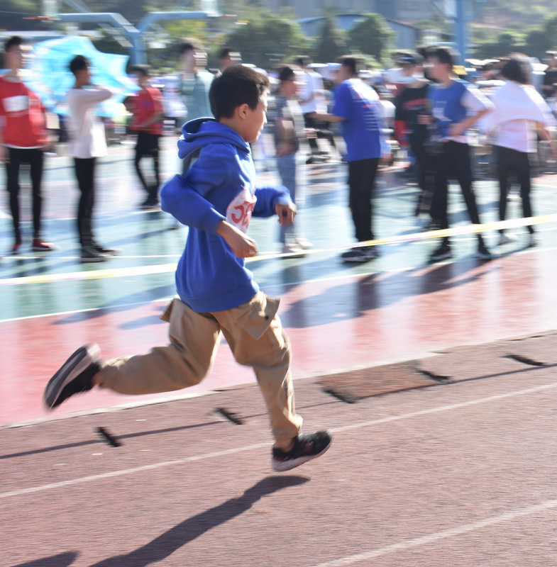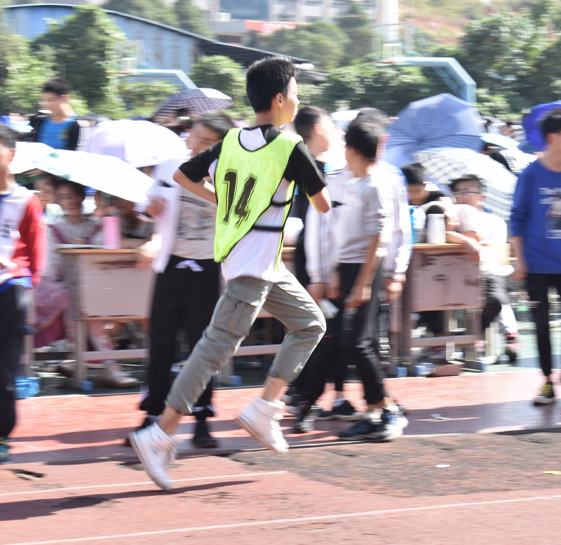 10.男子组100米跑,谷保强以14秒50的成绩夺得第一名,并打破原纪录刘喆轩14秒67的成绩。