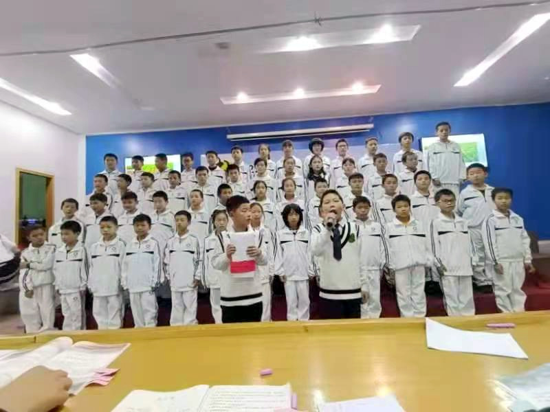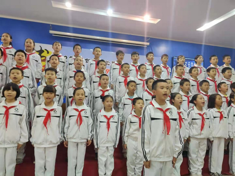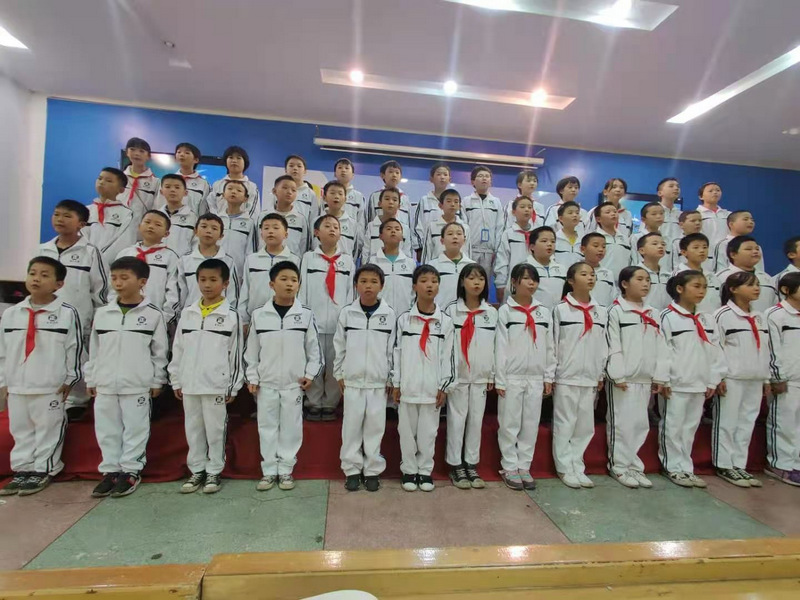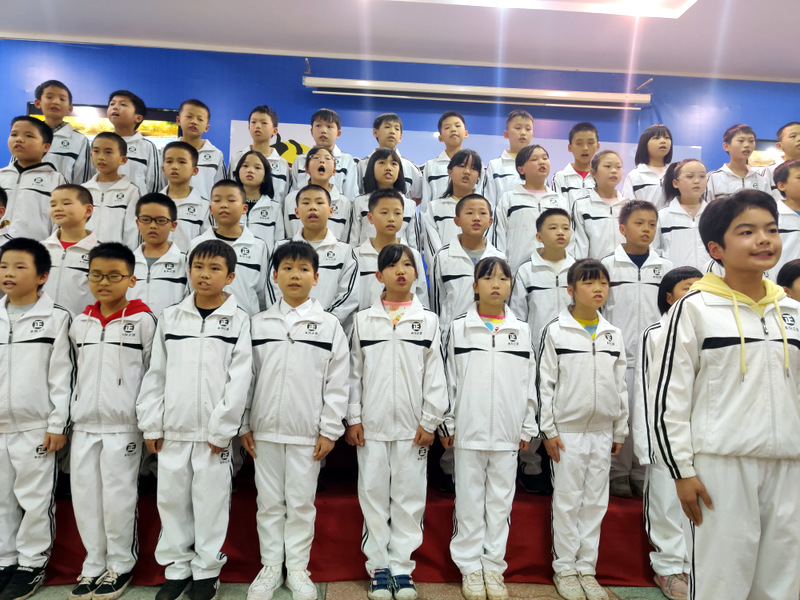 11月17日下午,五年级全体师生齐聚报告厅举行经典美文背诵比赛。