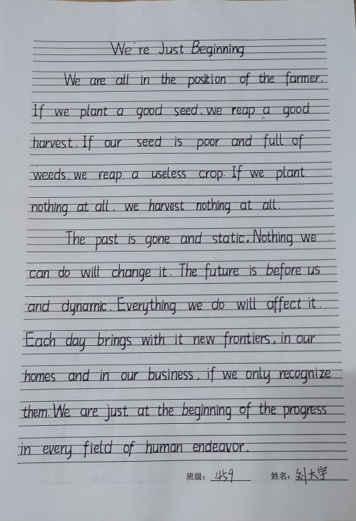 古人云,字如其人。写得一手漂亮字的人,眉宇间自然流淌出一种自信的气质。良好的书是一种学习态度,也是一种良好的学习习惯。为了进一步规范同学们的英语书写,激发学生们的英语学习兴趣,培养良好的书写习惯,正源学校初一年级B段举行了英语书写比赛。