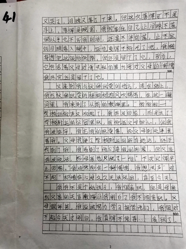 或许是千人比赛的奖项荣誉太有诱惑力,或许是自己的成长过程太过精彩,平时写篇400字作文都要抓耳挠腮的十一二岁同学们,绝大多数在1个小时不到的时间里已经写好交卷。在比赛过程中,学校自发电与市供电切换时,出现暂时的停电,有的学生打着小电筒还在奋笔疾书,一刻也不想耽误,直到老师说“要爱护眼睛,会适当延时”才肯停笔。这一戏剧性的小插曲既让老师忍俊不禁,也让老师感动不已。更令人惊喜的是,原本只做500--600字字数要求的比赛作文,很多同学洋洋洒洒写出七八百字还意犹未尽,果然是胸有成竹,文思泉涌。虽然并不是每个孩子的作文都能获奖,但他们在这场比赛中所表现出来的进取精神让人十分欣慰。