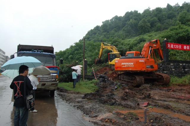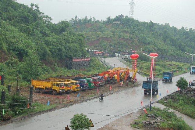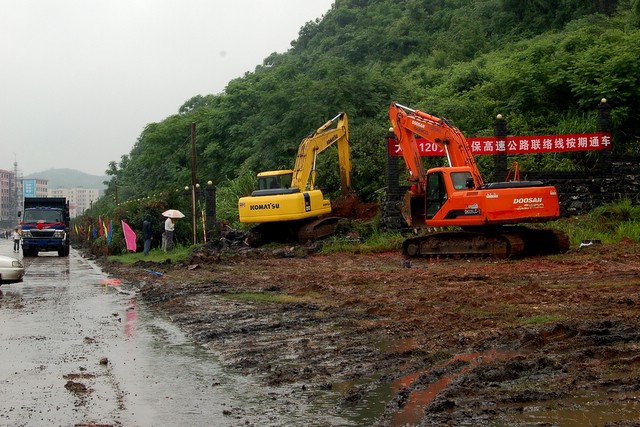 5月20号上午,正源学校南门口的高速公路联络线提质扩宽工程动工。