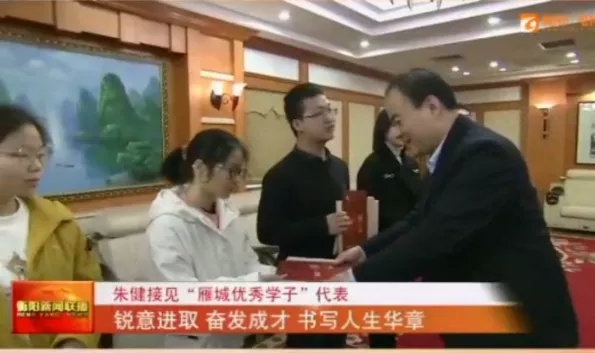 衡阳市市长朱健给钟芳蓉等“雁城优秀学子”颁奖