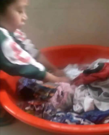 先洗筷子后洗碗。看我洗起碗来是不是有模有样?