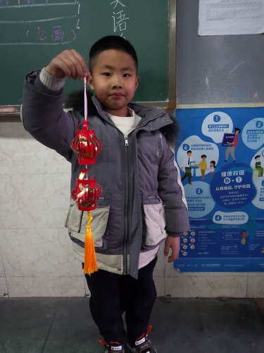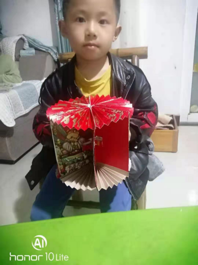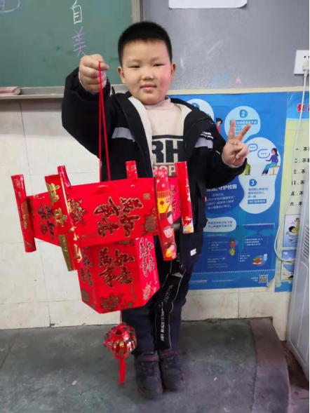 这个手工作品是我和妈妈一起动手做的,下面的小灯笼是我设计挂上去的。我想长大了要当个设计师,设计出许许多多好看的东西。