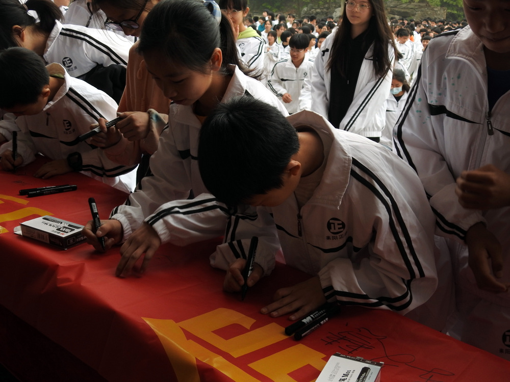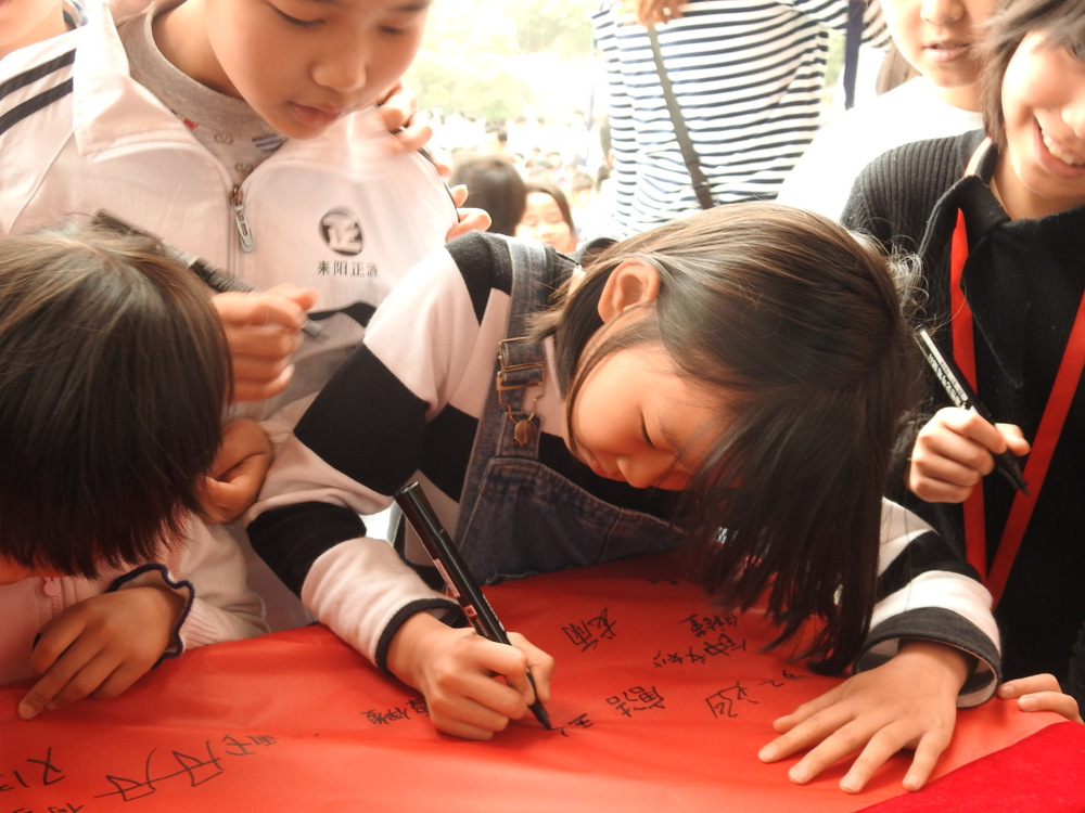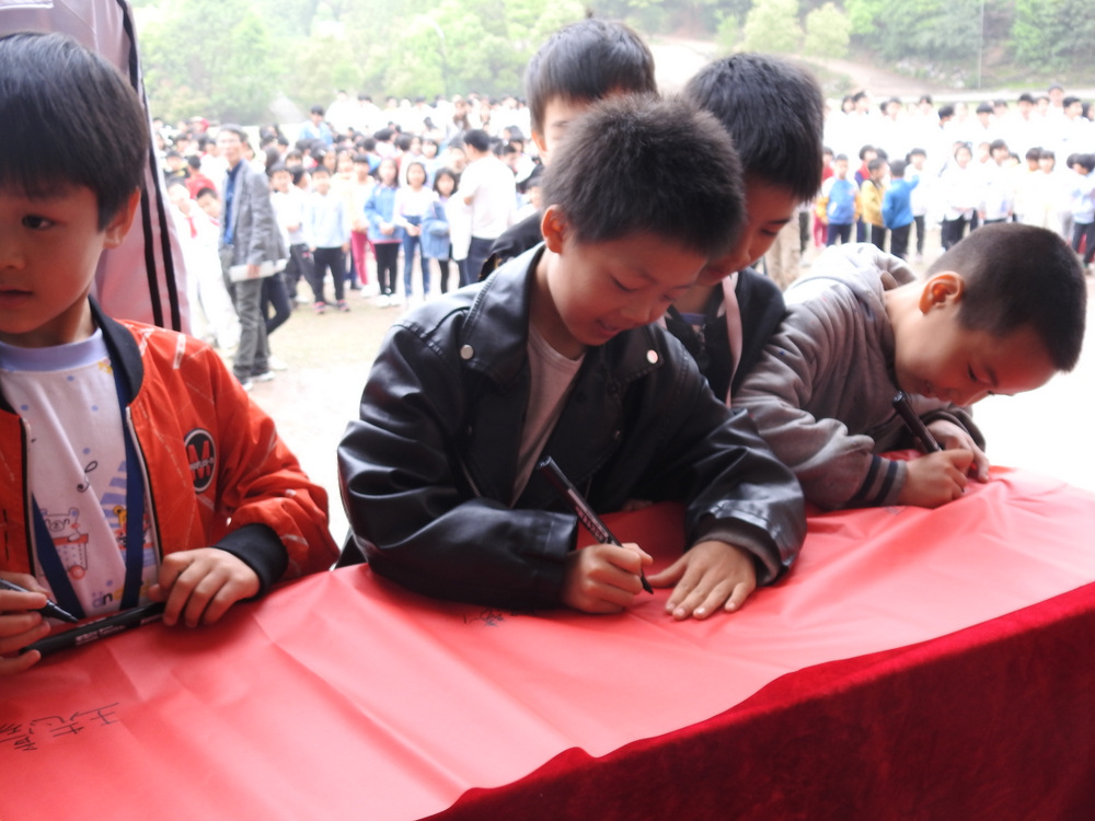 宣誓完毕,现场学生代表们纷纷走上主席台作承诺签字。幼儿园的小同学们更是纷纷转身呼唤老师,让老师抱着自己趴到防溺水教育横幅前,郑重其事地签下自己的名字,签下自己对防溺水教育的印象,签下自己对生命的珍爱与敬畏。