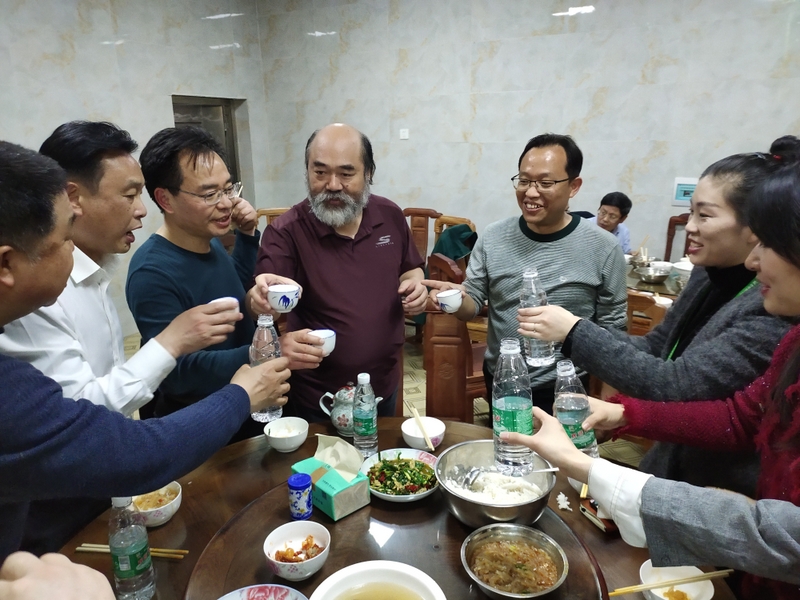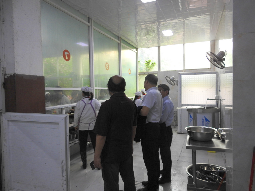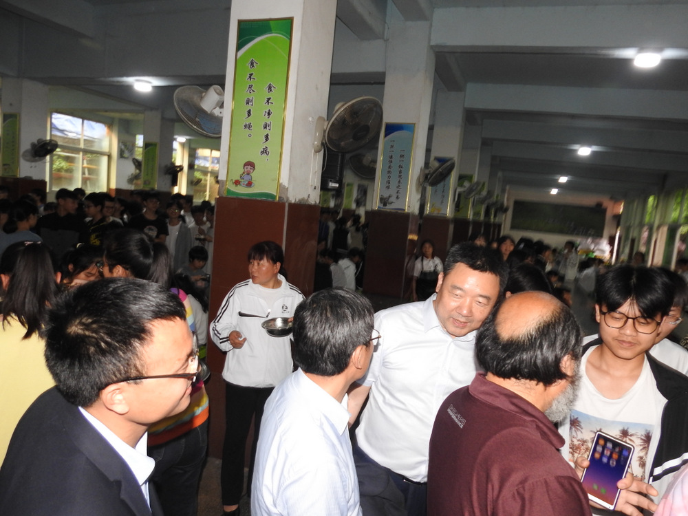 在罗校长的带领下,客人们走进学生食堂,了解学生伙食情况;走进教室,考察准高一教材;走进餐厅,品尝正源土菜。